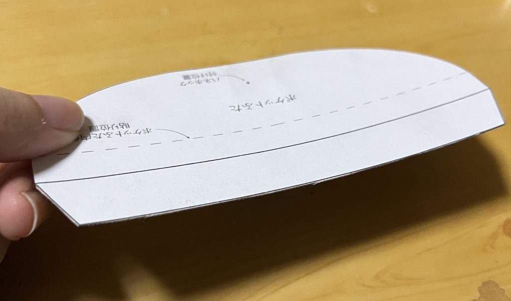 前回型紙を作る際、厚めの紙を用意してふにゃふにゃの型紙になってしまったので、今回は付属アイテムを蓋の役割をしていた厚紙を使用した。
