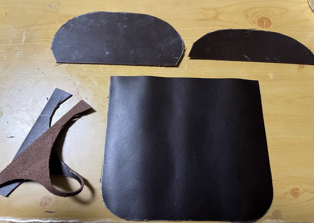 瞬きもできない程に革を凝視しながら約40分の格闘の末に、なんとかポケット製作に使う革を3つ完成させた。