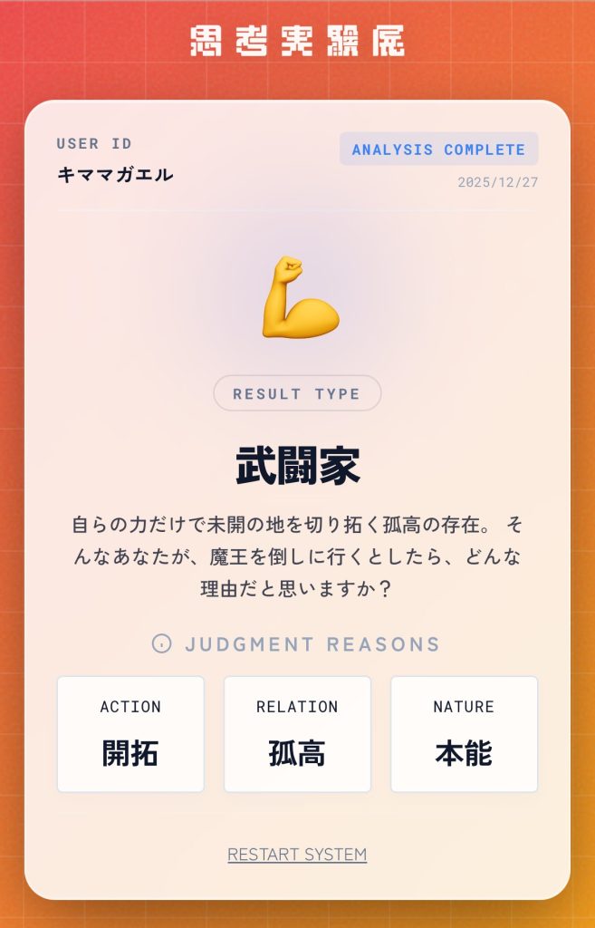 その結果、私は武闘家だった。